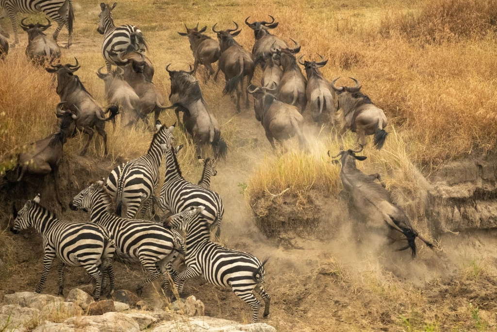 The migration is a year-round event as over 1.5 million wildebeest, zebras, and gazelles move in search of fresh grazing. In Tanzania, the action is best between December and July: